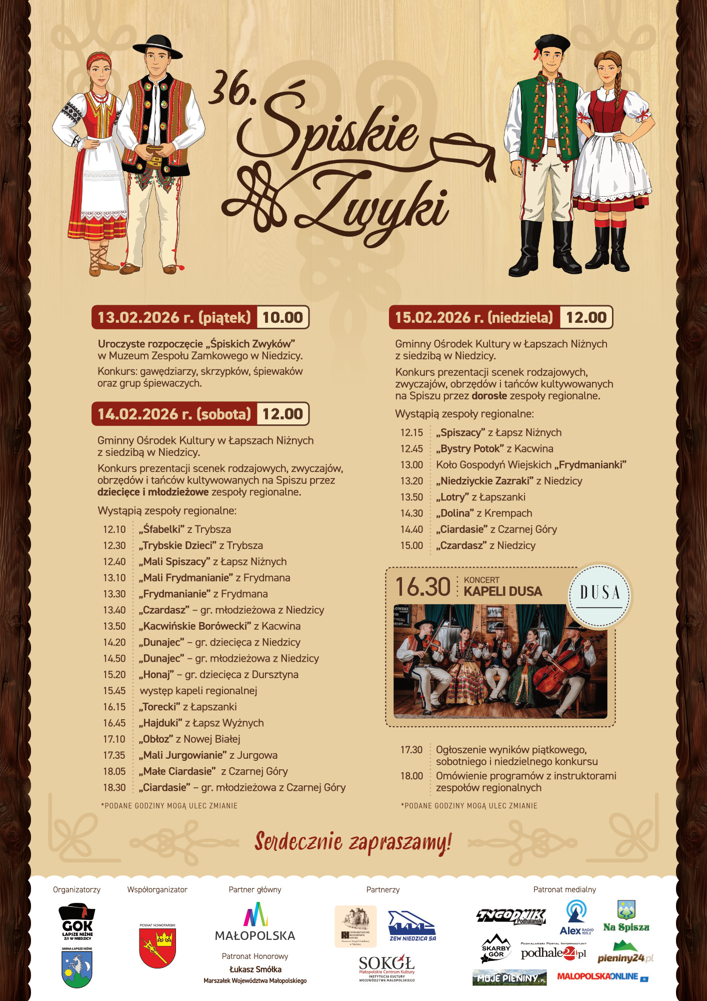 Zapraszamy serdecznie na "Śpiskie Zwyki", które odbędą się od 13 do 15 lutego 2026 r.